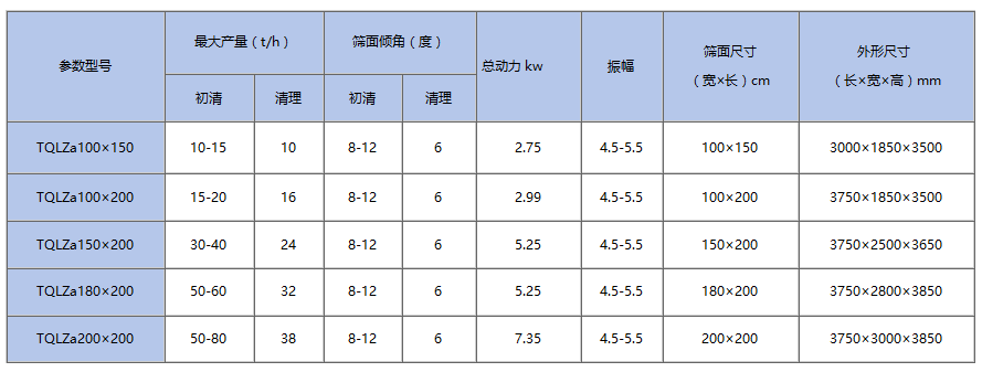 TQLZa系列移动式循环振动清理筛适用于粮库原粮的初清,对粮食中的大、中、小杂物进行筛理、分离。该设备采用振动电机、减震橡胶弹簧等优选零部件,具有噪音低、运转平稳、处理量大、能耗低,清理效果佳、整机封闭无灰尘外扬等特点,筛体角度及振幅可调整。